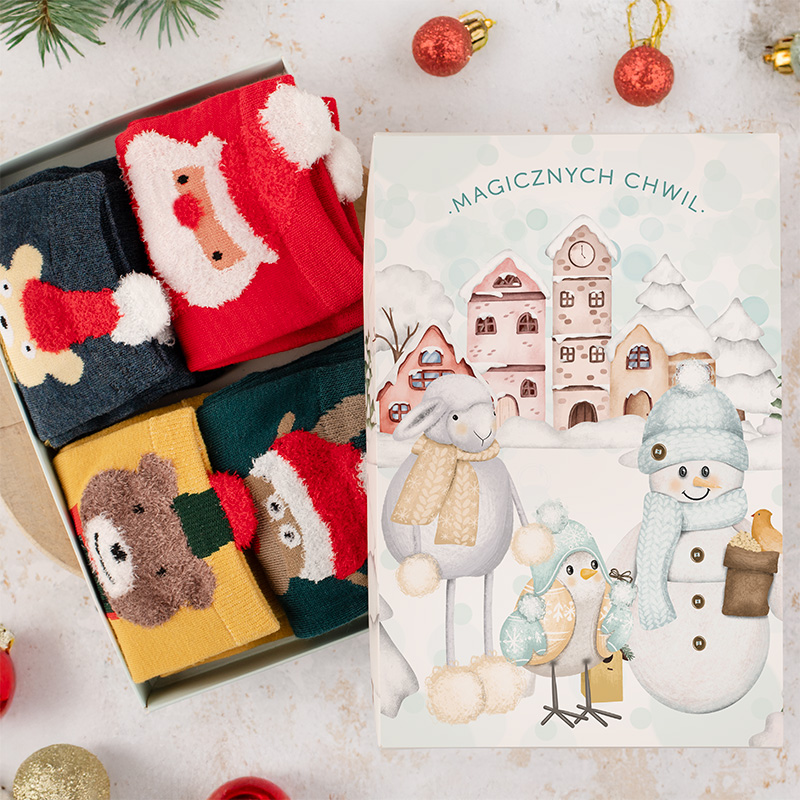 Zestaw świątecznych skarpetek w ozdobnym pudełku to gotowy prezent na Boże Narodzenie. Ciepłe, kolorowe i pełne uroku – idealne, by podarować bliskim świąteczną radości.