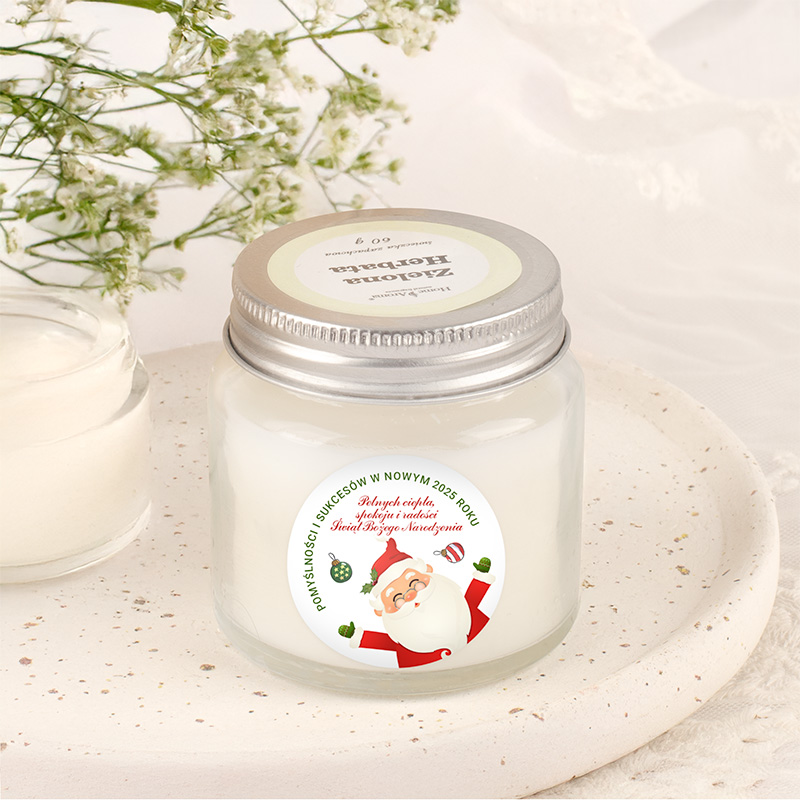 Świeczka zapachowa to zawsze udany i trafiony upominek, zwłaszcza, gdy jest wizualnie dobrany do okazji. Słoiczek z zapachowym woskiem i okrągłą etykietą na froncie będzie miły upominkiem na Święta Bożego Narodzenia.