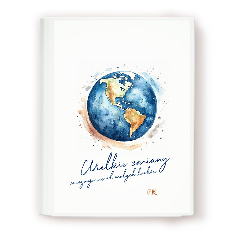 Personalizowana teczka do szkoły na rysunki z motywem Ziemi to praktyczny upominek dla dziecka, które uwielbia rysować i odkrywać świat. Na okładce znajduje się piękna, akwarelowa ilustracja naszej planety w odcieniach błękitu, zieleni i brązu, otoczona subtelnymi plamkami farby, które nadają jej artystycznego charakteru. Całość uzupełnia inspirujący cytat: „Wielkie zmiany zaczynają się od małych kroków”, który motywuje, by z odwagą realizować swoje pasje i marzenia. Pod napisem umieszczona została personalizacja w postaci inicjałów dziecka, które sprawiają, że teczka staje się dopasowana do właściciela.