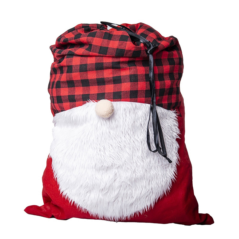 Worek na prezenty XXL wykonany jest z miękkiego materiału w intensywnie czerwonym kolorze, ozdobiony białą brodą i nosem skrzata, a także czapką z modnym wzorem w czerwoną kratę. Całość prezentuje się niezwykle uroczo, a dzięki tasiemce u góry worka łatwo zamknąć worek i zabezpieczyć jego zawartość. Z przodu wyróżnia się duży, puchaty element imitujący brodę, który od razu przywołuje na myśl bajkowego pomocnika świętego Mikołaja. Dzięki bardzo dużemu rozmiarowi worek pomieści wiele prezentów o różnych gabarytach – od zabawek i ubrań po książki, kosmetyki, a nawet całe zestawy świąteczne. To świetny wybór, gdy chcesz spakować kilka upominków dla jednej osoby lub obdarować całą rodzinę w wyjątkowy sposób.