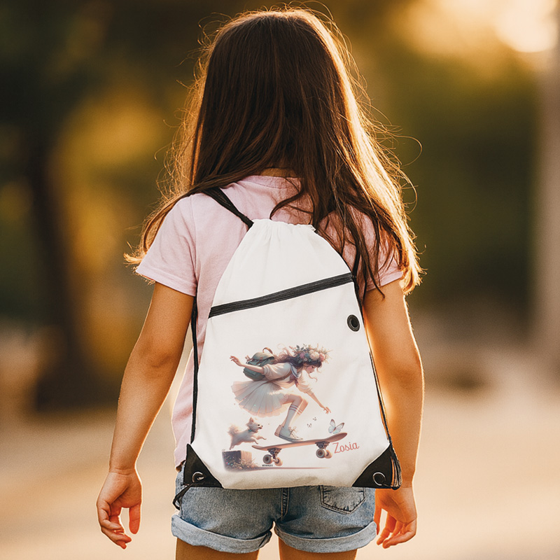 Worek z Personalizacją Do Jazdy na Deskorolce Prezent Dla Dziewczynki to idealny wybór dla młodych miłośniczek jazdy na deskorolce.