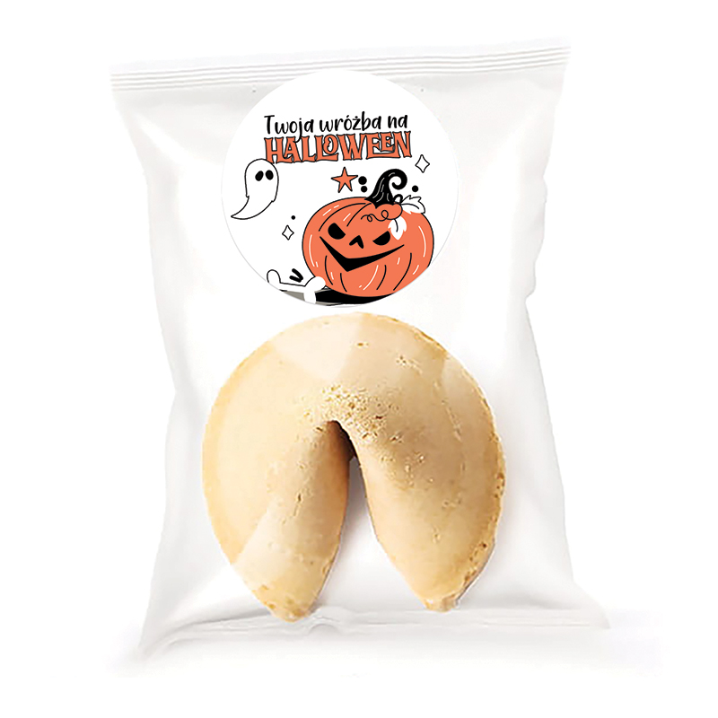 Każde ciasteczko zapakowane jest osobno w foliowe opakowanie, do którego dołączona jest samoprzylepna etykieta z ilustracją dyni w klimacie Halloween. Na kartoniku znajdują się motywy duchów, dyni i zabawnych ilustracji, które idealnie wpisują się w charakter imprezy. Dodatkowo w środku każdego z ciasteczek czeka karteczka z pozytywną wróżbą. To połączenie pysznego smaku ciasteczek, jak również wyjątkowej zabawy sprawia, że produkt jest tak chętnie wybierany na przyjęcia.