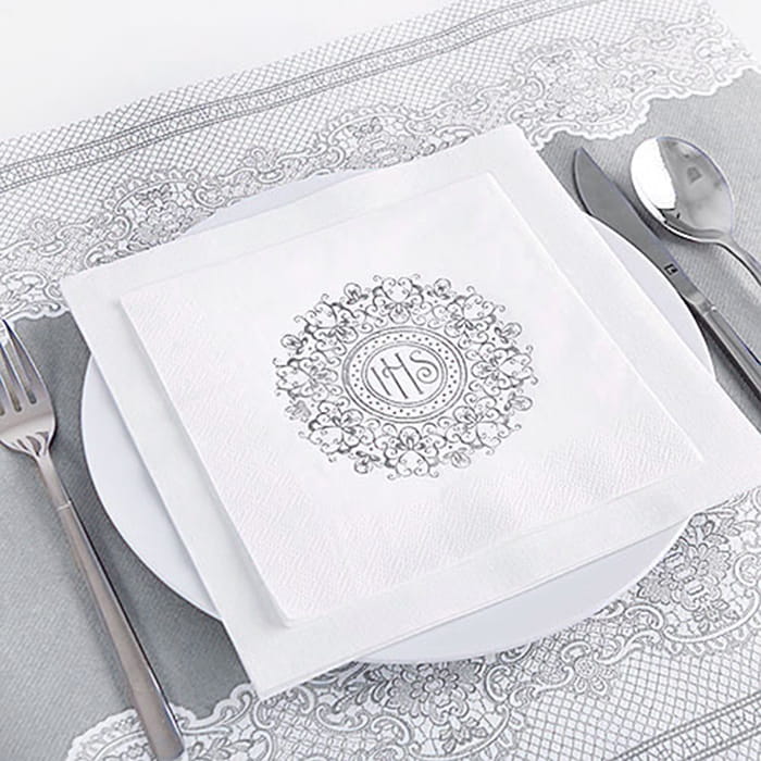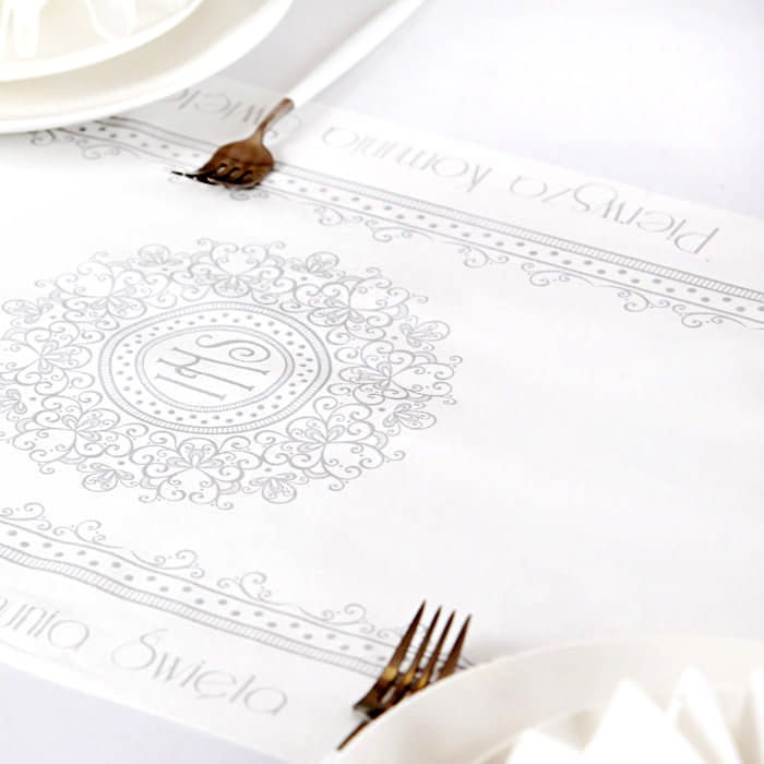 • Wzór na serwetkach połyskuje w srebrnym kolorze.