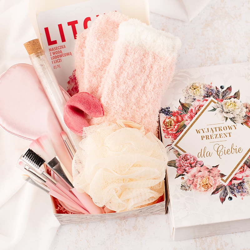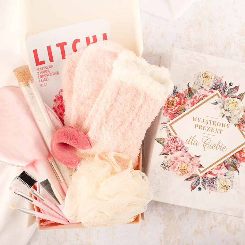 Wszystkie elementy zostały zapakowane w ozdobne pudełko z kwiatowym motywem i napisem „Wyjątkowy prezent dla Ciebie”, a wnętrze wypełnia różowy materiał dekoracyjny. To idealny prezent dla każdej kobiety, która ceni estetykę, pielęgnację i relaks. Świetnie sprawdzi się dla mamy, siostry, przyjaciółki, a także jako zestaw dla druhny lub koleżanki. Jego uniwersalność i elegancka forma sprawiają, że sprawdzi się na wiele okazji. Zestaw do pielęgnacji i relaksu w stylu Clean Girl to idealny pomysł na prezent dla kobiety.