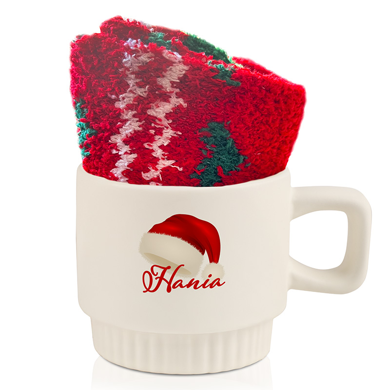 Zestaw w postaci kubka i skarpet to praktyczny i estetyczny wybór dla osób ceniących personalizowane upominki z zimowym klimatem. Prezent idealny na Mikołajki, Święta Bożego Narodzenia dla kobiety.