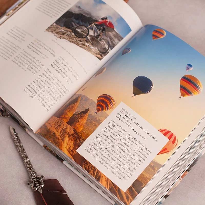 • Książkę „Bucket List. 1000 pomysłów na przygody życia” – 17,5 cm x 23 cm, liczba stron 496.