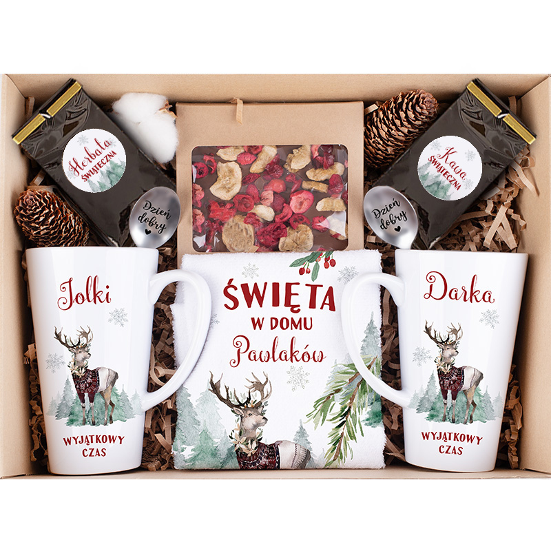 Oryginalny zestaw świąteczny w postaci kraftowego pudełka z wyjątkową zawartością. Zestaw umieścimy w pudełku z wieczkiem. Wypełnienie wewnątrz pudełka jest w pięknym naturalnym odcieniu. Świąteczny box obejmuje: